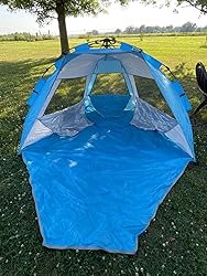 - 【EXCELLENT VENTILATION & PRIVACY】This shelter tent has 3 large mesh windows offering maximum ventilation, air circulation, and small animal-repellent, keeping you cool and breezy even in the hot sun. Roll up or down the flaps to cover and uncover the window for personal privacy or a 360-degree view of the beach. Also, it was designed with a sealable extended floor for changing clothes to protect privacy.