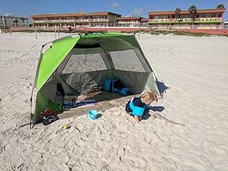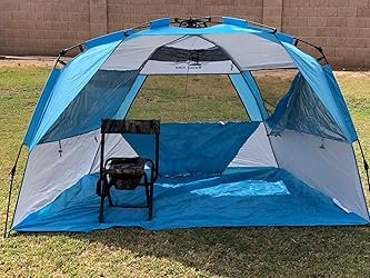- 【Sturdy Structure & Windproof】Our Beach shelter features 5 built-in sandbags, rigid fiberglass, self-supporting tent structure, firm enough without the worry of collapse. Additional windproof ropes, stakes, and sandbags are also included, giving external force to reinforce the stability of the camping shelter, reliable enough to withstand wind blowing conditions.