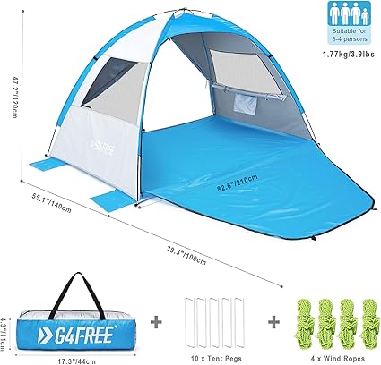- 【Qualified Tent & Guarantee】Our G4Free camping portable beach tent will withstand ever long lasting performance with tough construction. Lightweight and portable to take for your outdoor leisure time. If you meet any quality issue about our tent, please contact us and we will give positive solutions within 24 hours, 100% money refund or replacement is guaranteed, your satisfaction is our target