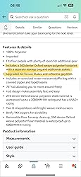 - Includes an oversized water-resistant duffle bag with a covered zipper and taped seams