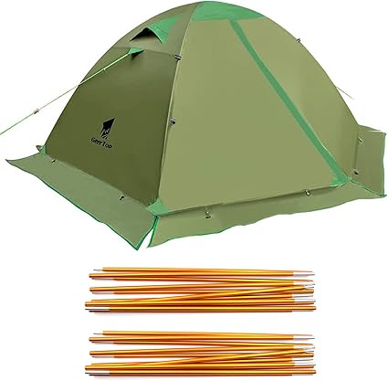 - 【DOUBLE LAYER TENT】Features two layers for excellent weather protection and ventilation. Inner layer can be used alone in warm, dry weather for great ventilation and maximum enjoyment of the natural surroundings. Easily add the outer layer for privacy and to keep the wind and inclement weather out. This versatility makes this an excellent tent for four season camping. The double stitched seams are sealed to keep rain out and for durability