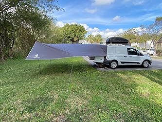 - 【Versatile Setup Options】Option 1: Single pole “A-frame” setup with the vehicle for added privacy; Option 2: Dual pole “awning” setup with the vehicle for maximum shade and shelter; Option 3: Dual pole “A-frame” setup without a vehicle, serving as a camping tarp shelter