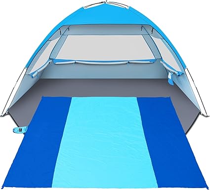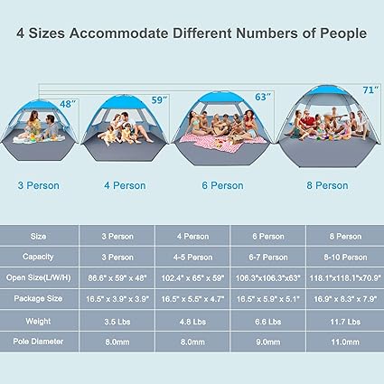 - Super Large Space: Size of 86.6″L x 59″W x 48″H, 30% bigger than other beach tents at similar price, fits 3 person. It provides a comfortable space for family and friends on the beach