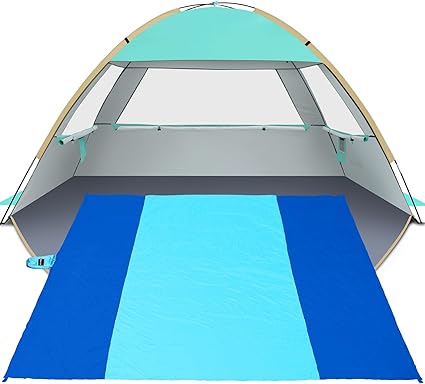- Easy Setup & Portability: Gorich portable beach tent boasts a quick setup process within minutes. Its lightweight and compact design make it incredibly easy to transport with a folded size of 16.5″H x 5.9″L x 5.1″W, weight 6.6 lbs. Weighing in at just 1.5 pounds, our beach blanket is incredibly lightweight, making it effortless to carry. Both have storage bags ensure convenient folding and storage, perfect for travel without adding any extra burden to your journey.