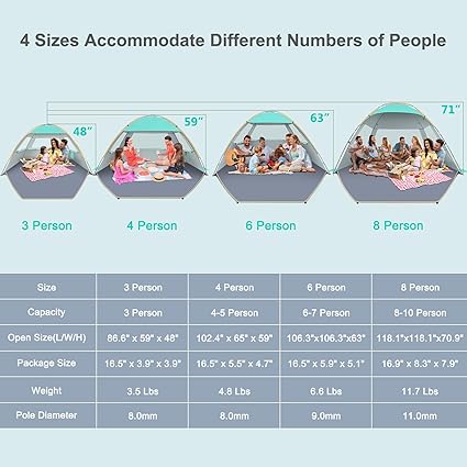 - Upgraded Design & UPF 50+ UV: High-quality SILVER COATED Fabric ensures that the coverage area of Anti-UV effects, keeping you and your family safe from the damage of the strong sunshine. 8mm IMPORTED fiberglass frame is safer, more durable and rust-free, which supports tent stably stand by itself and keeps shape after long time use