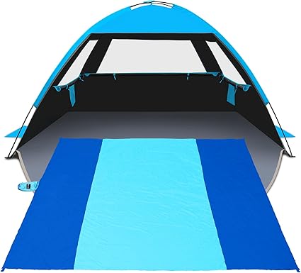 - Easy Setup & Portability: Gorich portable beach tent boasts a quick setup process within minutes. Its lightweight and compact design make it incredibly easy to transport with a folded size of 16.9″H x 7.9″L x 8.3″W, weight 11.7 lbs. Weighing in at just 1.5 pounds, our beach blanket is incredibly lightweight, making it effortless to carry. Both have storage bags ensure convenient folding and storage, perfect for travel without adding any extra burden to your journey.