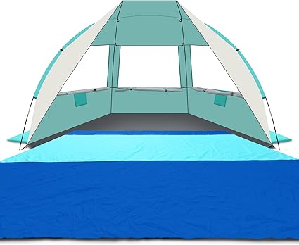 - Ultimate Sun Protection for Peace of Mind: There’s nothing better than enjoying the beach without worrying about harmful UV rays. Our beach sun shelter is made with 190T silver-coated polyester fabric that offers UPF 50+ protection, blocking up to 99% of UV rays. Stay cool, stay safe, and enjoy every moment under the sun with peace of mind