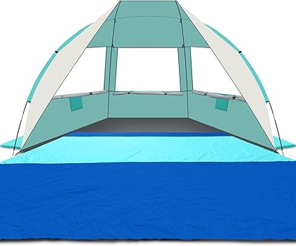 Gorich Portable Beach Tent for 3-6 People with UV Protection and Blanket