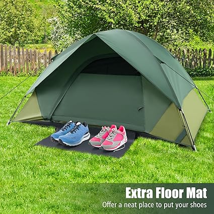 - Spaciousness & Friendly Details: The dome tent offer generous room for 2-person to move around without feeling narrow. And the double-layer front door can be changed to a floor mat to protect your shoes. To keep your belongings organized, the interior includes storage pockets. Besides, you can hang lamp on the top hook at night.