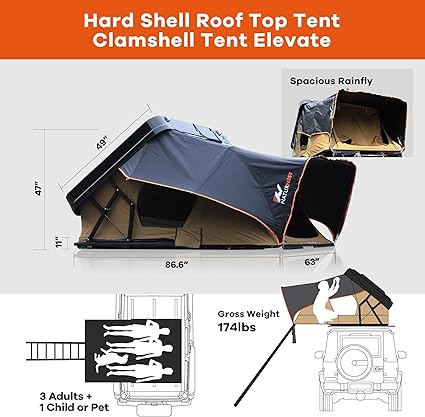 - Fully overland gear: Inside the roof tent, you’ll find everything you need for a comfortable camping experience. Mesh windows for ventilation, blackout shades for privacy, built-in outlets, LED light strips, storage pockets, a sturdy ladder, and a panoramic skylight all come together to create the ultimate camping setup. With these thoughtfully designed features, this naturnest hardshell rtt ensures you have everything you need for the best outdoor adventure