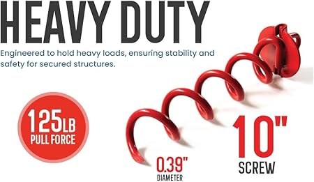 - ✅ 𝗛𝗲𝗮𝘃𝘆 𝗗𝘂𝘁𝘆 𝟭𝟬-𝗜𝗻𝗰𝗵 𝗦𝘁𝗲𝗲𝗹 𝗦𝗽𝗶𝗿𝗮𝗹 𝗚𝗿𝗼𝘂𝗻𝗱 𝗔𝗻𝗰𝗵𝗼𝗿𝘀: Constructed from durable, rust-resistant steel, these anchors provide superior strength and stability for securing tents, trampolines, and outdoor equipment, ensuring they stay put even in high winds and heavy loads.