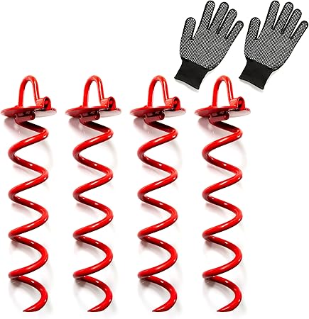 - ✅What’s Included?: 4 x 10-inch Red Ground Anchors 1 x Pair of Installation Gloves