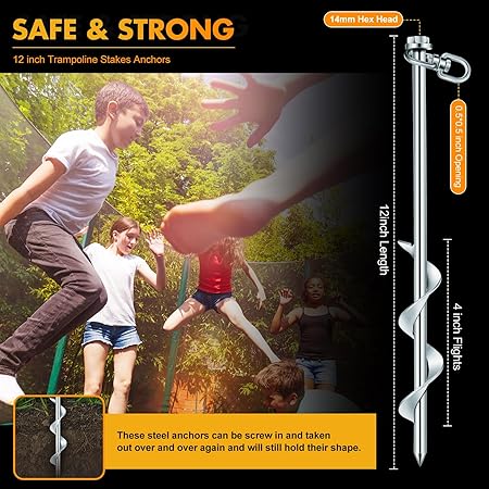 - Wide Range of Applications: these swing set anchors are practical and classical tools, which can be widely applied for camping tents, trampolines, swings, playgrounds, slides, canopies, temporary shelters, automobile ports, sheds, pet rooms, trees, fences and fence posts, vertical hammocks, and more
