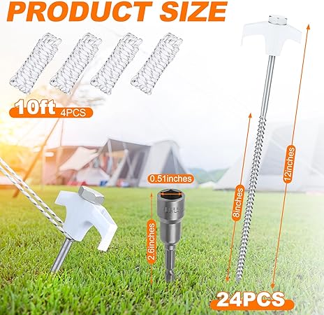 - Heavy Duty Tent Stakes: you will get 24 pcs metal tent stakes for Inflatables,sufficient quantity of ground stakes meet all your outdoor needs; It comes with a 0.51 inch diameter hex head driver and 4 bundles of tent ropes, each 10 ft long;These stakes for inflatables can be applied in various occasions, such as garden lights, Thanksgiving, Halloween pumpkin lights and streetlights, Christmas santa claus and snowman, summer inflatable toys