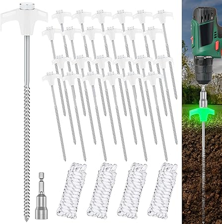 - Easy to Use: Metal stakes have pointed tips can straightforward and convenient to use, the spiral design offers a stronger grip that are easy to insert into hard soil ; With the help of a cordless drill or impact driver, these stakes will have your tents, canopy, awning or tarps grasp the ground more stable; Remember to angle the stake and the ground at 60 degrees and leave around 1.6 inches (4cm) of room to tighten the rope