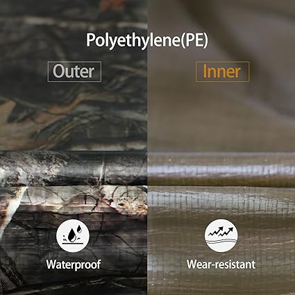 - High Qualtiy Fabric: Tongcamo tarp is made of high-density, tightly woven, made-to-last polyethylene fibers, UV protection against harmful sunrays and fading, waterproof, sunproof and windproof, can be applied to rain, shine, snow or wind all seasons. It has the strength, durability, woven tightly together and the plastic is laminated. The Tree Camo Tarpaulin has a 9 mil thickness, 3.5 oz. per square yard, and a 8 x 8 weave count.