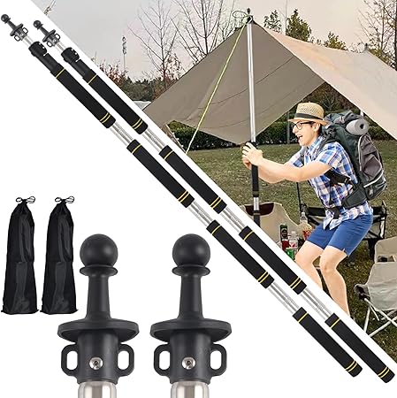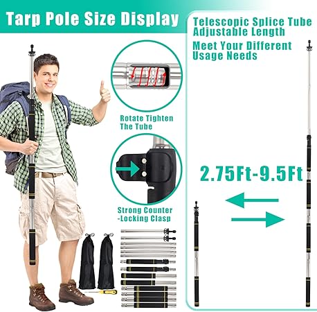 - 【2PC Telescopic Tarp Poles】 The length of the canopy pole can be adjusted from 2.75Ft to 9.5Ft. Tent poles for tarp have firm counter-locking buckle can let you not worry about the length sliding after telescoping. You can adjust the shade sail poles length according to your different needs.
