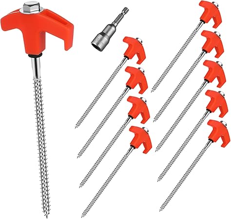 Heavy Duty Camping Tent Stakes 10 Pcs Spiral Screw Metal Pegs