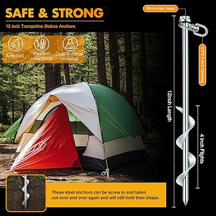 - Wide Applications: these swing set anchors are practical and classical tools, which can be widely applied for camping tents, trampolines, swings, playgrounds, slides, canopies, temporary shelters, automobile ports, sheds, pet rooms, trees, fences and fence posts, vertical hammocks, and more