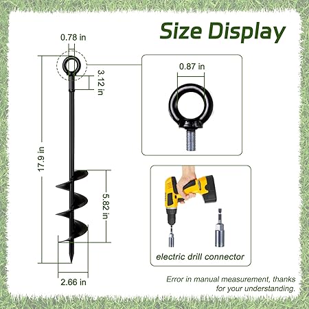 - Package Contents: You will receive 6 pcs 18inch screw anchors, 1 electric drill connector; quantity is enough to meet your daily use and replacement needs; suitable for gardening enthusiasts, campers and outdoor workers