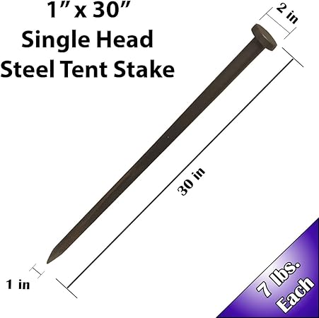- STAKE DIMENSIONS: Each of our metal stakes measure 1 inch in diameter, are 30 inches long, and have 2″ wide head to accommodate a wide variety of straps and rope.