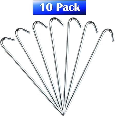- VERSATILE USAGE: Our steel hook stakes are ideal to anchor small inflatables, for securing fencing, rope tie-offs, outdoor camping tents, yard decorations, or anything that needs to be held to the ground. With a wide range of usage, these ground stakes pair well with web straps, ropes, bungees, or tie-downs to provide stability to your set up.