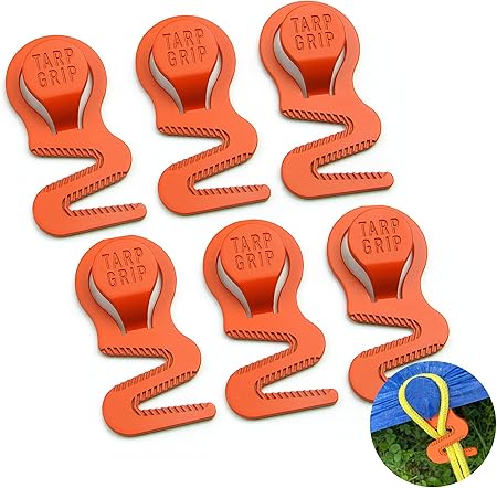 - STAYS FIRMLY IN PLACE. Tarp Grip provides a strong grip on any fabric without causing any significant damage to make sure they don’t affect the lifespan of your covers or tarps. The shape is designed to offer a more stable occlusion between the tarp and grip unit, so it doesn’t loosen even during strong winds. NO knots are needed. Ideal for tarps without eyelets.