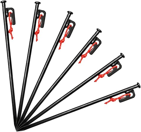Secure your campsite with our 6Pcs Heavy Duty Tent Stakes! Durable, easy to use, and comes with a storage bag. Order now for worry-free camping!