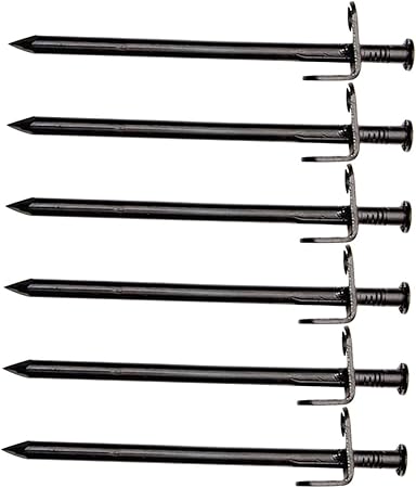 - Metal tent pegs–the compact size is convenient for storage, practical use, you can carry tent peg when you go to camp easily,canopy pegs