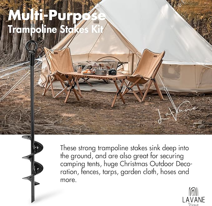 - SECURE & STABLE – 3-inch spiral blades allow the ground anchors to screw in the ground more effectively, creating a strong anchoring point in deep soil, thereby enhancing the stability and safety of the anchored object, especially in windy conditions or during energetic jump training. The sharp tip can be easily inserted into various surfaces, including soil, sand, lawn, and more.