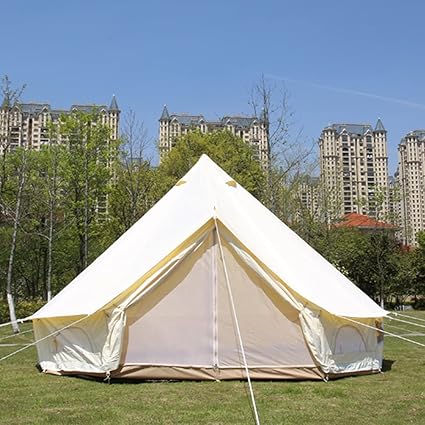 - 【4 SEASON BELL TENT】- This is a 4-season style bell tent suitable for all weather. In winter, you can install a stove to keep warm. You even can roll up the whole sidewall for good airflow and view.