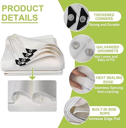- All Season ProtectionWhite Canvas Tarps Sheet Protects items from damage by wind, rain, heavy snow, and sunlight, Suitable for indoor, outdoor and all season use.
