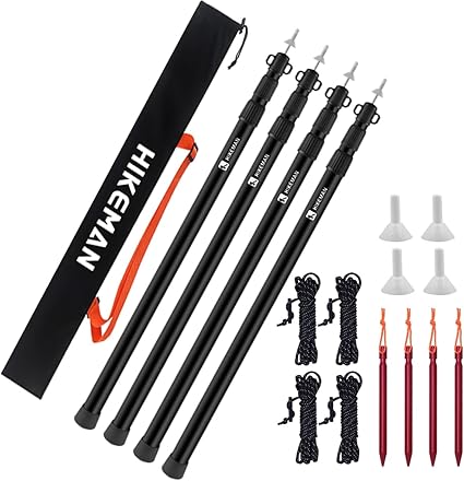 - 【Adjustable and Lightweight】Our camping tarp poles offer a large adjustment range from 35.43in/90cm to 90.55in/230cm with 3 sections. Each pole weighs only 1.1lbs. They can be taken anywhere you want