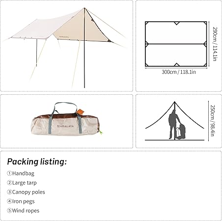 - 【Tarp Size】 The Rain Tarp size is 118.1 x 114.2 x 86.6in, weight is 7.93lbs/3.6kg.