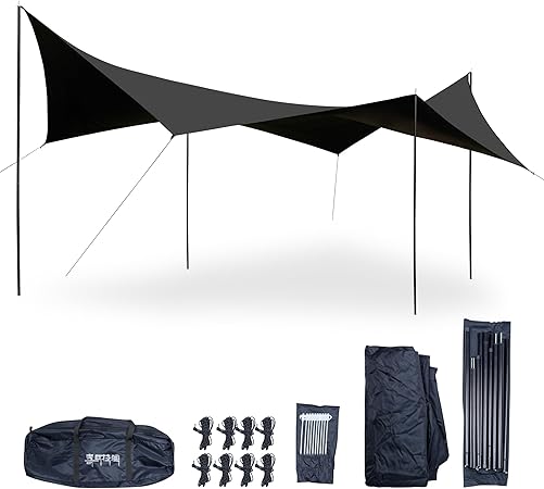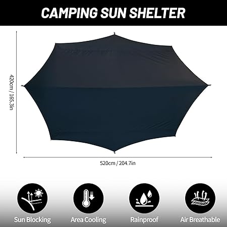 - 【Anti UV Function】 Aiming at the pain point of UV sunburn in outdoor camping activities, we have developed a UV resistant sunshade and sunscreen canopy. Adopting black technology, the fabric is treated with advanced wet coating to effectively isolate UV rays, insulate heat, prevent sunburn and breathability, and solve the problem of condensation.