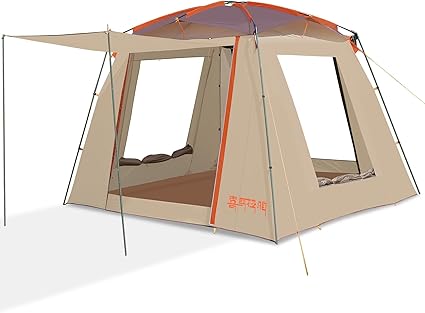 - 【Convenient and Practical】 The bracket adopts the structure of the top through the tube, the four side bracket hooks and the bottom pins, the front and back doors are equipped with screen doors, the left and right windows open, the whole tent can be separated from the bottom of the outside four sides, and it can be used as a camping tent with the ground mat. The front and back doors are straight open, and the door poles can be picked as sunshade, the left and right curtains can be opened and clo