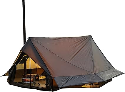 - 【Premium Material & Cozy Camping】Crafted from 20D single-sided silicone-coated nylon, our hot tent with stove jack ensures durability and lightness, providing a reliable shelter for camping. Equipped with a stove jack, it offers a cozy space for solo campers, while accommodating a wood stove may make it a bit crowded for two person.If you carry a tent stove, It is recommended to use single person.