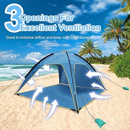- 3-Door Design For 360° Ventilation:Designed with 3 opening of 78.74in bottom width, 21.65in top width, and 36.22in height, great to enhance airflow and reduce temperature, keeping summer’s scorching heat at bay for your family to enjoy the oceanic breeze in comfort.