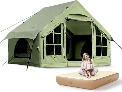- Experience the ultimate outdoor comfort with the KNUO 10×7.2ft Inflatable Camping Tent paired with the KNUO Queen Air Mattress with Infinite Fiber Structure—a perfect combination for glamping in any season