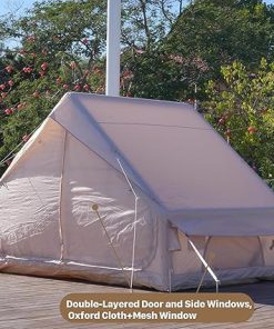 - 【Safe and Sturdy Material】This 4-season inflatable tent is made of high-density 410D Oxford cloth and SBS zipper, waterproof and UV resistant, so you can feel comfortable and not stuffy inside; it can reasonably balance the Ventilation and waterproofing, and can withstand the temperature difference between day and night to avoid the flow of cold air, keep the indoor environment comfortable and do windproof and rainproof.