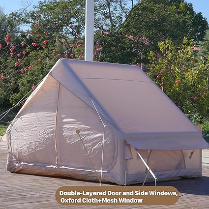 - Easy To Set Up】This inflatable tent is constructed with a special one-piece TPU inflatable tube and comes with a pump. there are 2 air inlets on the tent, by manually pumping the air through these two air inlets, remember to tighten the other inflation port during inflation,you can quickly put it up in 5 minutes. It is very easy to set up than a tent with regular poles.