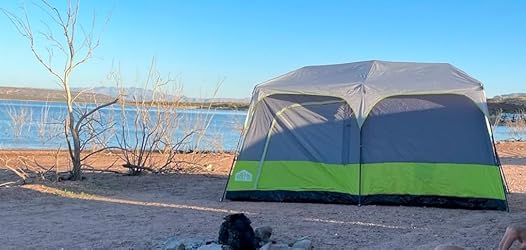 - Rugged and Durable – Crafted from 210T Polyester Fabric, its PU2000mm coating provides excellent waterproof performance, inverted seams and taped seams on rainfly and tent body help keep water out. Steel poles, iron ground stakes and windproof ropes ensure the tent is strong and resistant withstand up to 35 mph winds(Ensuring ground nails are firmly inserted into the ground is key to wind protection).