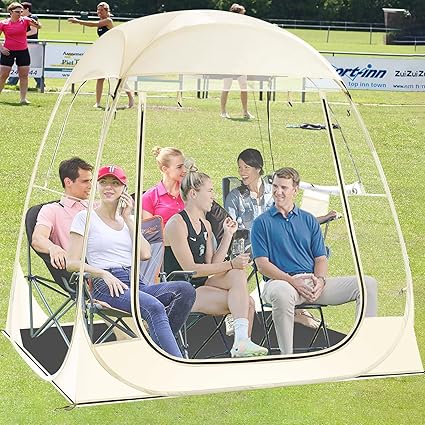 - Versatile–You can set up this pop-up tent anywhere and it’s perfect for watching all kinds of outdoor sports events,camping,hiking,fishing,photography,outdoor movies,and more,providing you with seclusion and great visual effects to enjoy your time outdoors with family and friends.
