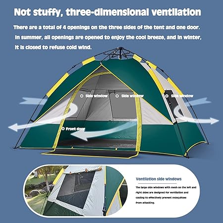 - Durable Material:The inner and the rainfly tent is made with 210T polyester and provides 2000mm water resistance and excellent UV resistance. The bottom is made of 210D oxford fabric waterproof material to that water will not penetrate
