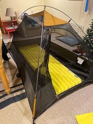 This is very easy to set up but snug for 2 people over 6’2″. Overall, I think it is a great tent for 2 people that have to hike into their campsite. Seems durable and believe it is waterproof as we had no dew inside the tent when we woke up.