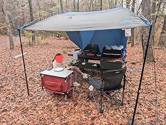 I like it so much I went and got the backroads version too. Depending on where I’m going I’ll pick which one to bring along, I McGiver it to go over my Gazelle tent or other tall tent as well as the gazebo since my dogs are contained there sometimes I just want to sit outside without having to open and close zippers and of course you can attach to the car, van etc. I’m a 66 year old woman that camps mostly solo and have no problem pitching either one all by myself, I’ve never broken a pole and is been under substantial winds with no issues. My only concern is the poles that are inside the pockets touching the ground getting much friction in windy conditions but that’s solved by either placing a mat under or simply saving a couple of plastic lids like the ones for juice, putting them under those 2 poles and staking it. By the way it’s been under rain and there were no leaks above so as long as there’s no wind you can be under it and stay dry or prevent water from coming inside your vehicle if windows or doors are open. Great product, I highly recommend it.