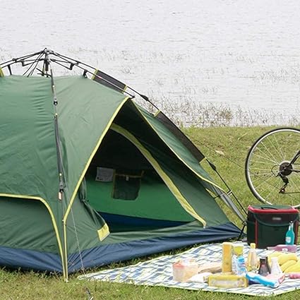 - Advanced Ventilation-Soft wind will enter through the floor vents, ventilate from time to time, and fill the tent with fresh air. Advanced ventilation design will also help resist strong windsThe camping tent is easy to ll and suitable for outdoor trips with family and friends on sunny , allowing you to have a pleasant tripThe built-in tent is equipped w