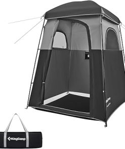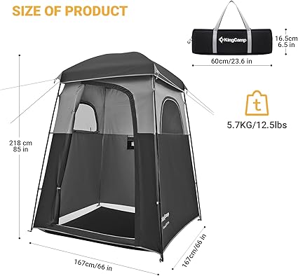 - 【SPACIOUS SHOWER TENT】 At 85″ high and 66″ in length and width, this privacy tent offers ample space for comfortable standing and movement. It enhances the convenience of camping showers, changing, and bathroom activities. Weighing only 15 lbs, it folds into a compact size of 24″ L x 7.5″ W x 7.5″ H for easy storage and portability.