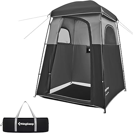 - 【STRONG & STURDY PRIVACY TENT】 Constructed with 1000mm PU-coated waterproof, thick Oxford cloth and a strong, flexible steel frame, this camping shower tent is durable, stands independently, and resists breakage and corrosion. The tent’s roof and side mesh windows promote air circulation and ventilation, while the durable PE floor keeps you dry and clean, protecting you from wet ground during showers or while changing clothes.