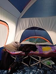 This tent is extremely spacious and easy to set up. I took it out to La Jolla Indian campground for a few days and we didn’t have any issue. It does get kind of cold inside from wind coming in through that big entry door. But other than that it was a nice tent.